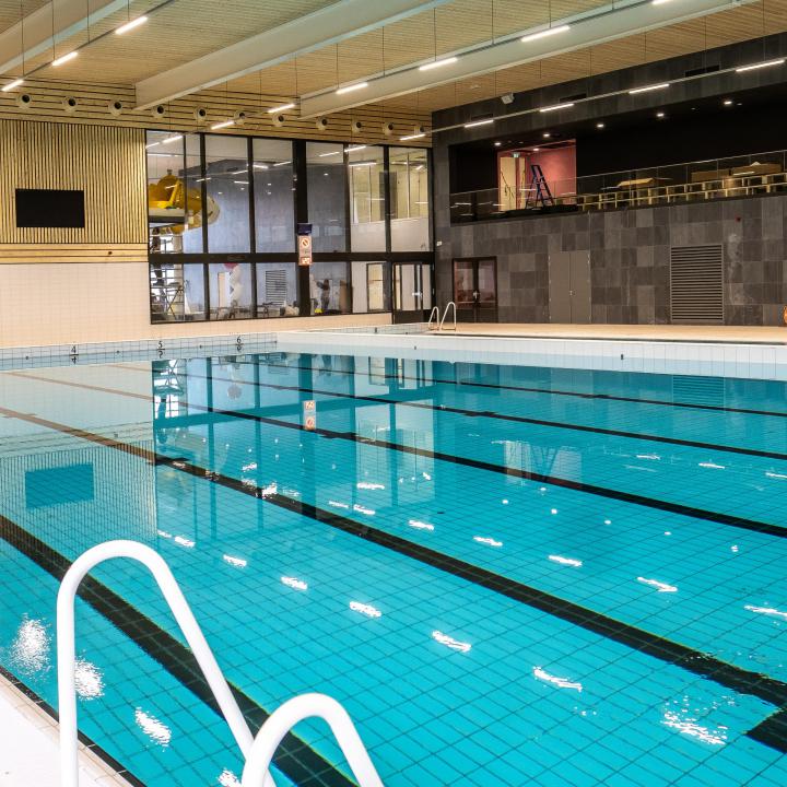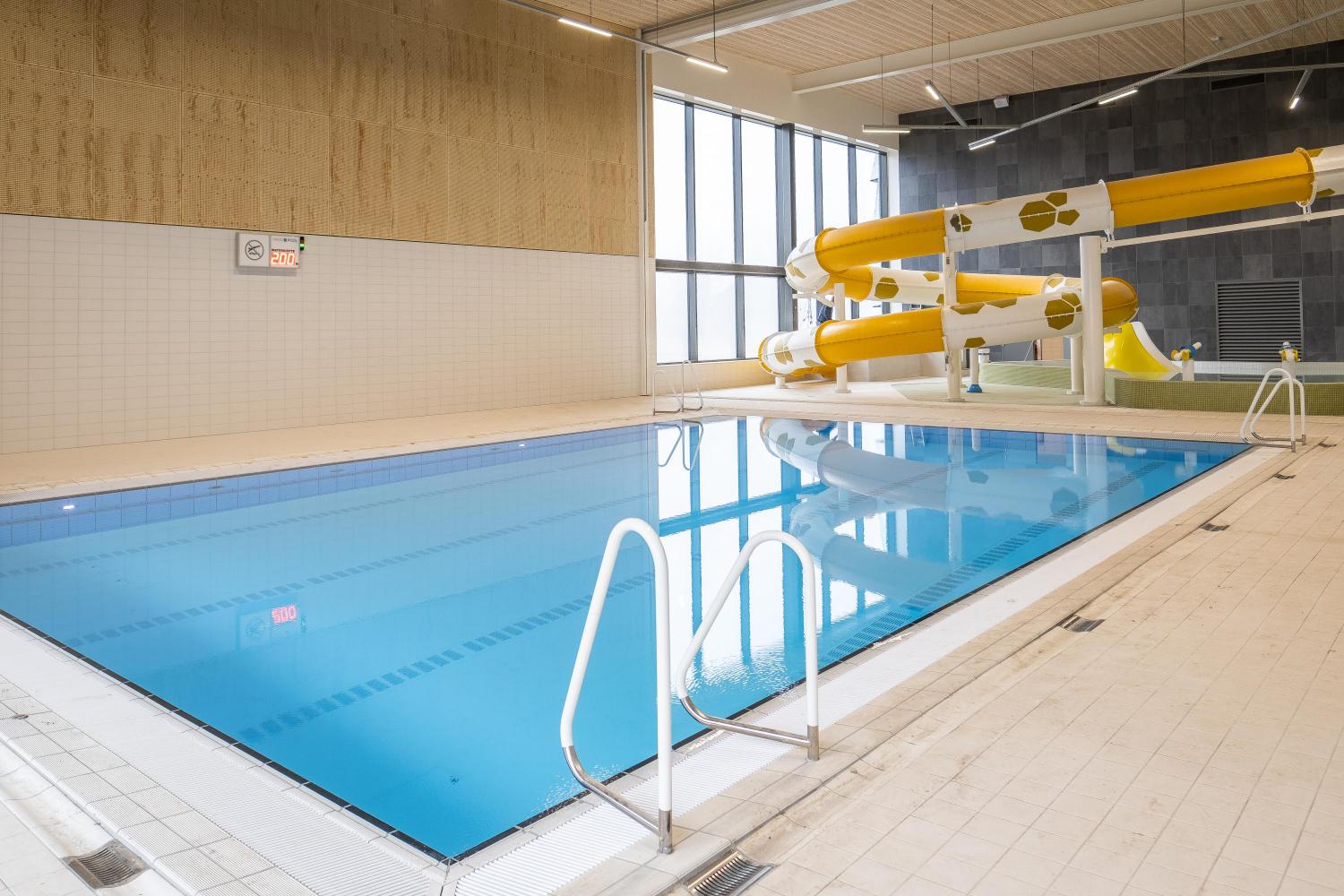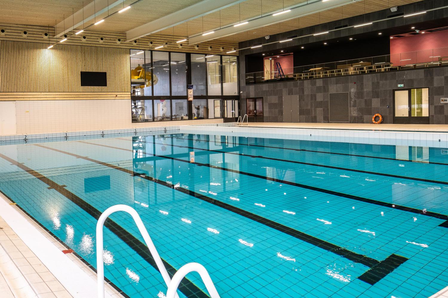 Om het groene karakter van de site zo goed als mogelijk te bewaren werd door het integreren van het bestaande buitenbad met het nieuwe binnenbad een zo compact mogelijk gebouw gerealiseerd. Een gebouw dat als een natuurlijke barrière tussen het zwembad en de overige sportfaciliteiten werkt.
